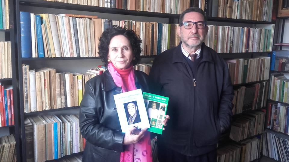 | Paloma Fernández Gomá, junto a su esposo Francisco Cubillas en la biblioteca de la Funadción Mgara Rebahi |